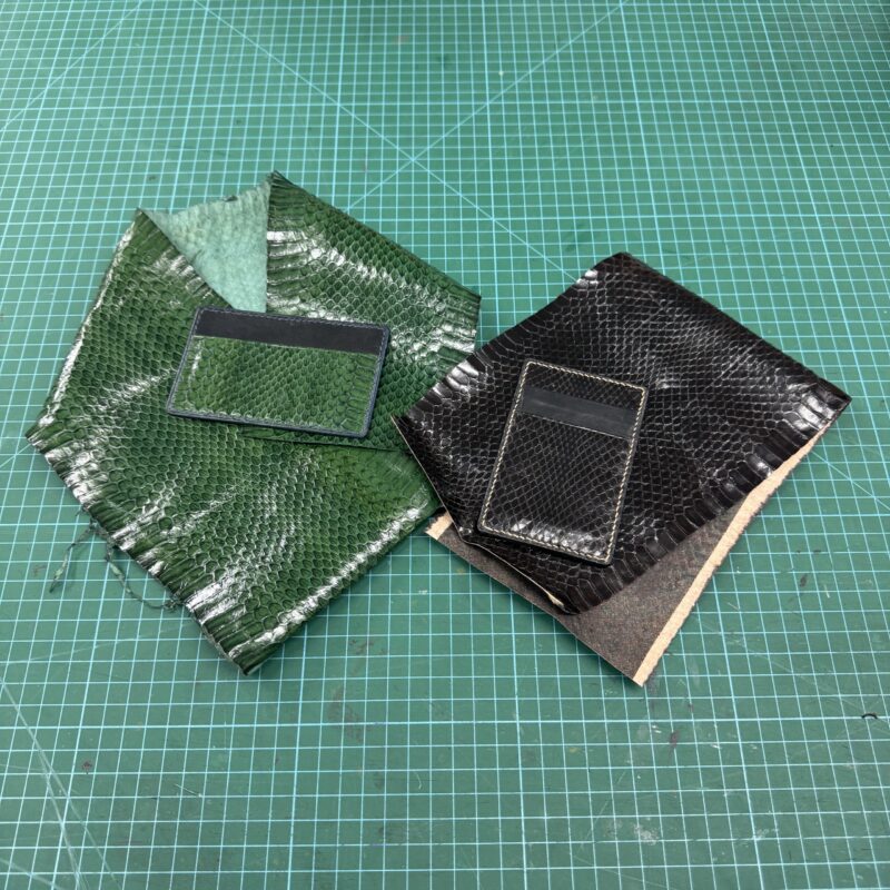Wizytownik ze skóry egzotycznej z dwoma typami wlotów kieszeni